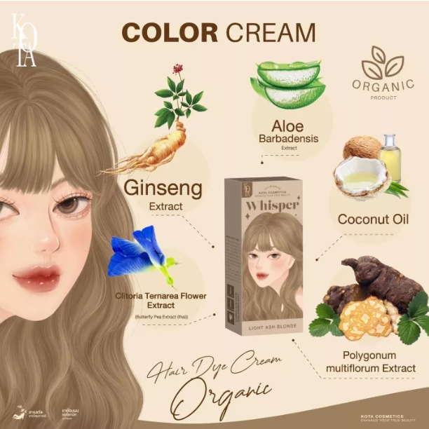 KOTA Color Cream โคตะ ครีมเปลี่ยนสีผม ออแกนิค [13 เฉดสี] [100 ml.]