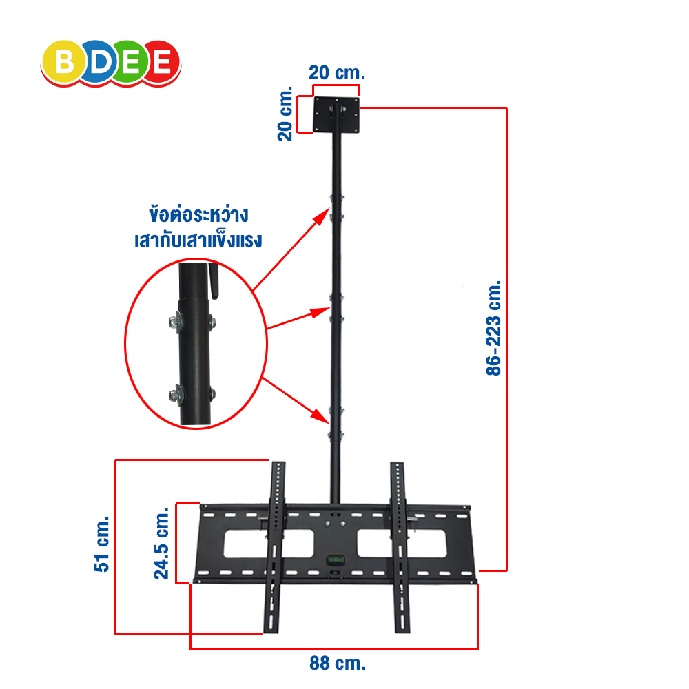 9SAT ขาแขวนทีวี ขนาด 55-85 นิ้ว รุ่น C4 (แบบติดเพดาน, ปรับก้มได้, หมุนได้) เสายาว 223 ซ.ม.