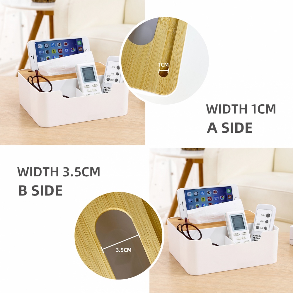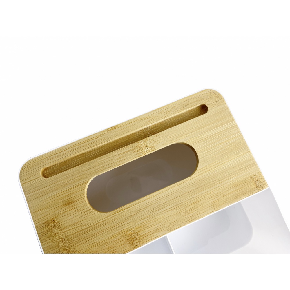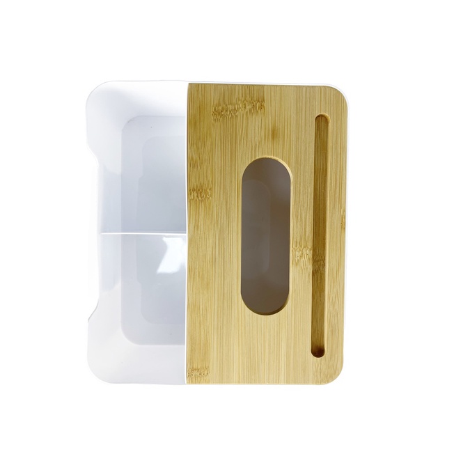 GlobalHouse GOME กล่องทิชชู่พลาสติกเหลี่ยมฝาไม้ รุ่น TB003 ขนาด 21.7×18.5×8ซม. สีขาว สินค้าของแท้คุณภาพดี