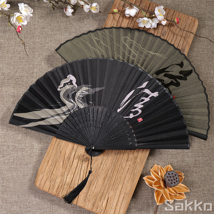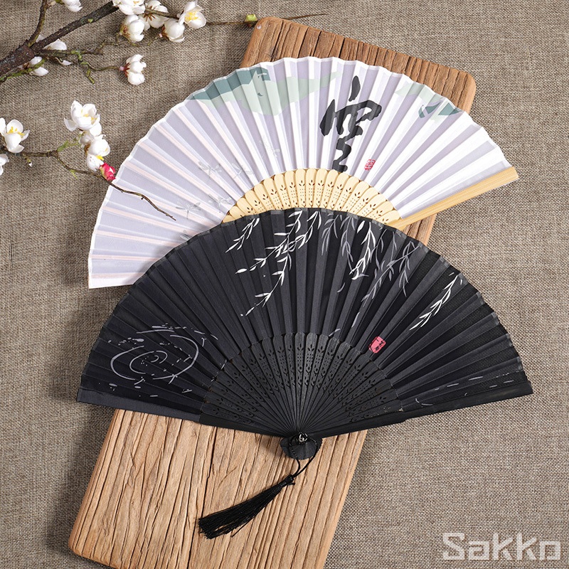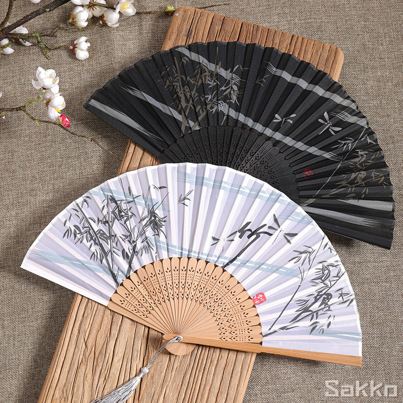 พัด ด้ามไม้ไผ่เนื้อผ้า พัดญี่ปุ่น 8นิ้วขนาดเล็กกะทัดรัดดี พัดพับได้พกพาง่าย พัดจีนมีพู่ห้อยหลายสี