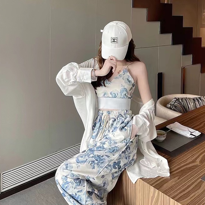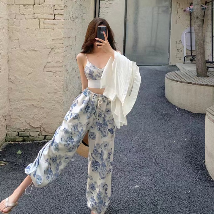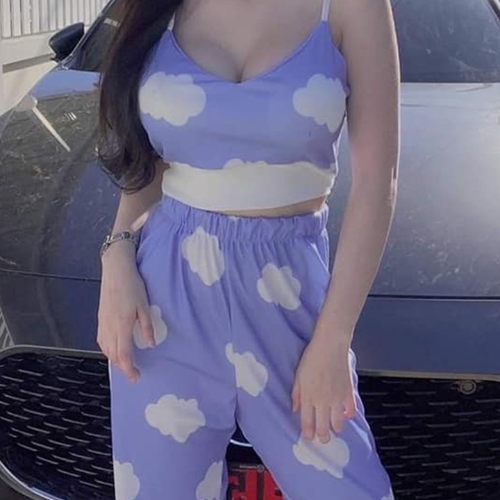 Set 2 ชิ้น ชุดเซ็ต Sexy เสื้อสายเดี่ยวเอวลอย+กางเกงขายาวเอวสูง ชุดเข้าเซ็ตสีฟ้า งานน่ารัก เสื้อผ้าผู้หญิงแฟชั่น