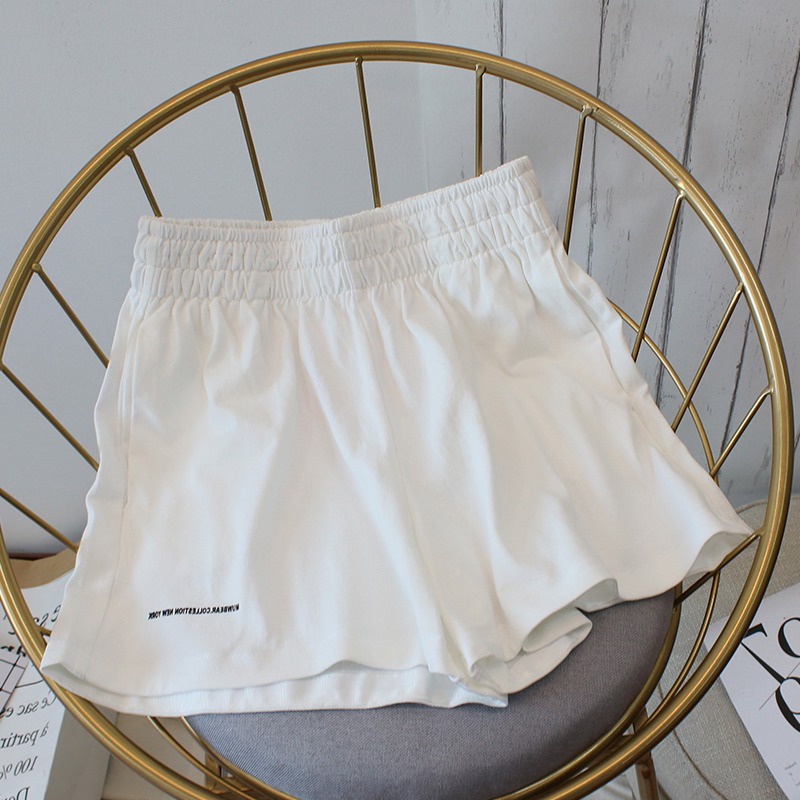 กางเกงขาสั้นผู้หญิง หน้าร้อน ขาสั้นแฟชั่น กระเป๋า2ข้าง ขากว้าง เอวยางยืด เกงกีฬาขาวดำ สปอร์ต ลำลอง