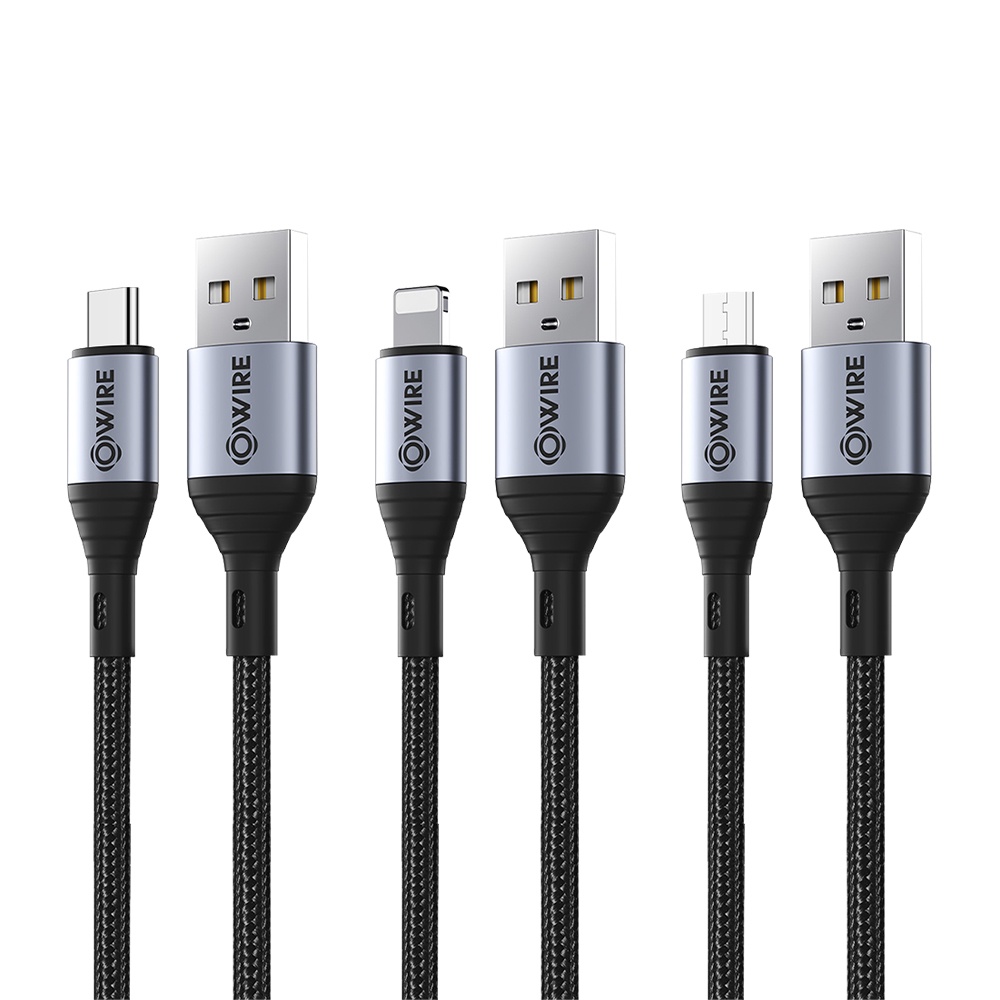 OWIRE สายชาร์จ 2.4A 3A สายไนลอนถัก ทนทาน ชาร์จเร็ว Fast Charge สําหรับ โทรศัพท์มือถือ แท็บเล็ต 2in1 3in1