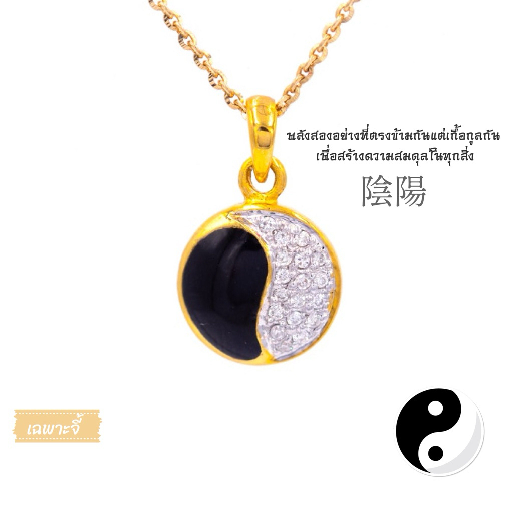 Happy Jewelry จี้หยินหยาง ลงยา จี้เพชรแท้ ตัวเรือนทองแท้ 37.5% (9K) [เฉพาะจี้] PD168