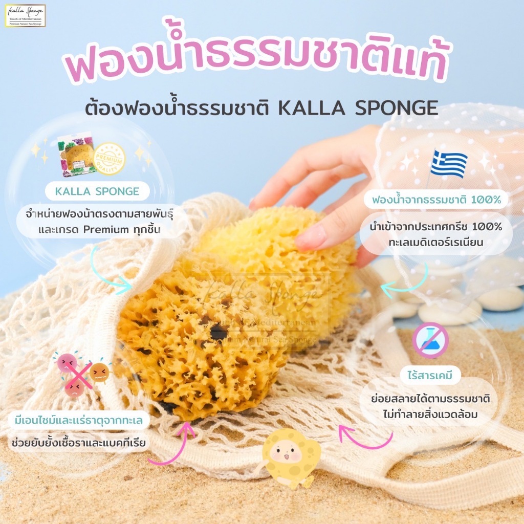 KALLA SPONGE ฟองน้ำธรรมชาติ ชนิด Hard Head สีเหลือง ฟองน้ำ สำหรับอาบน้ำ ใช้ได้ทุกเพศทุกวัย