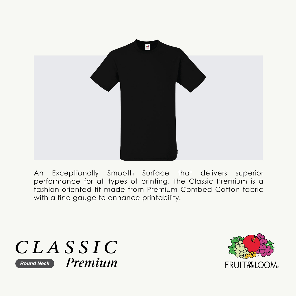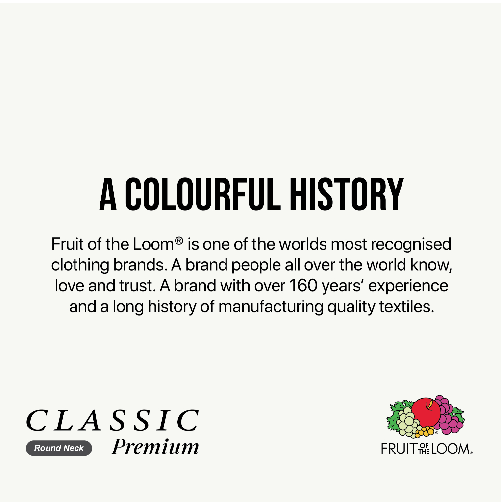 Fruit Of The Loom Classic Premium 160gsm เสื้อยืดคอกลมผ้าฝ้ายหวี
