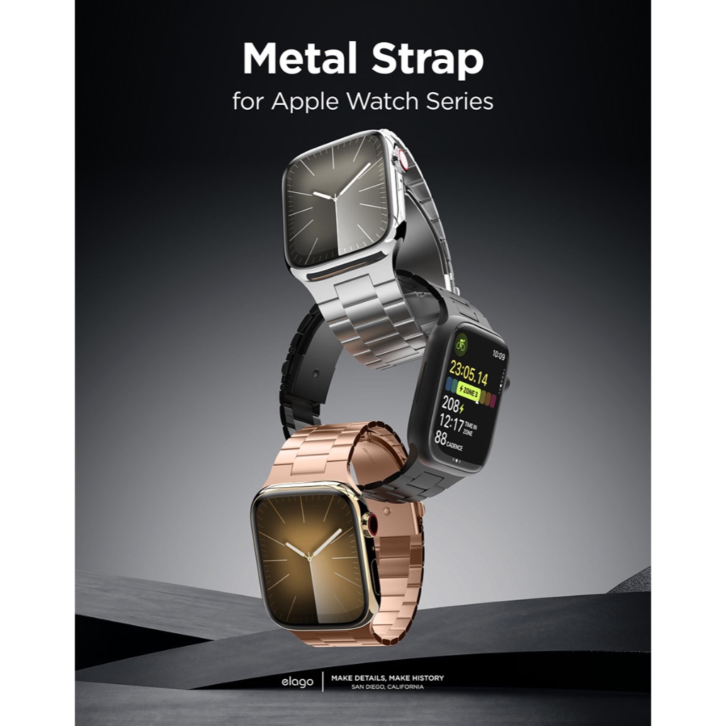elago Apple Watch Metal Strap Band Stainless Steel 4, 5, 6, 7, 8, 9, 10, 11, SE, Ultra สายสแตนเลสแท้