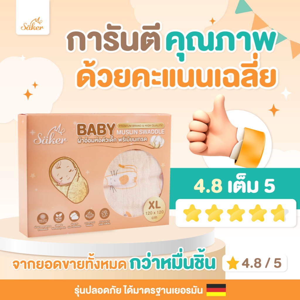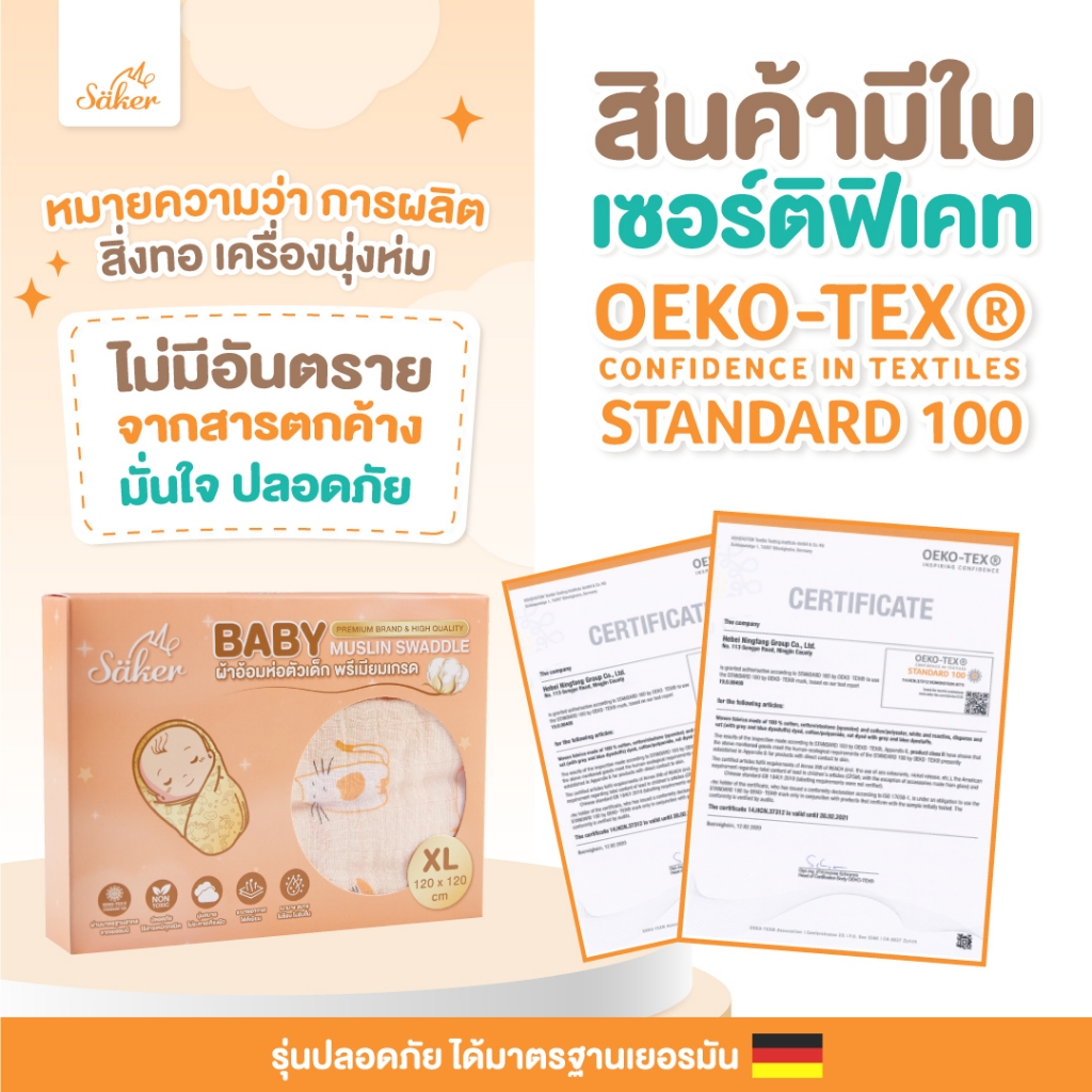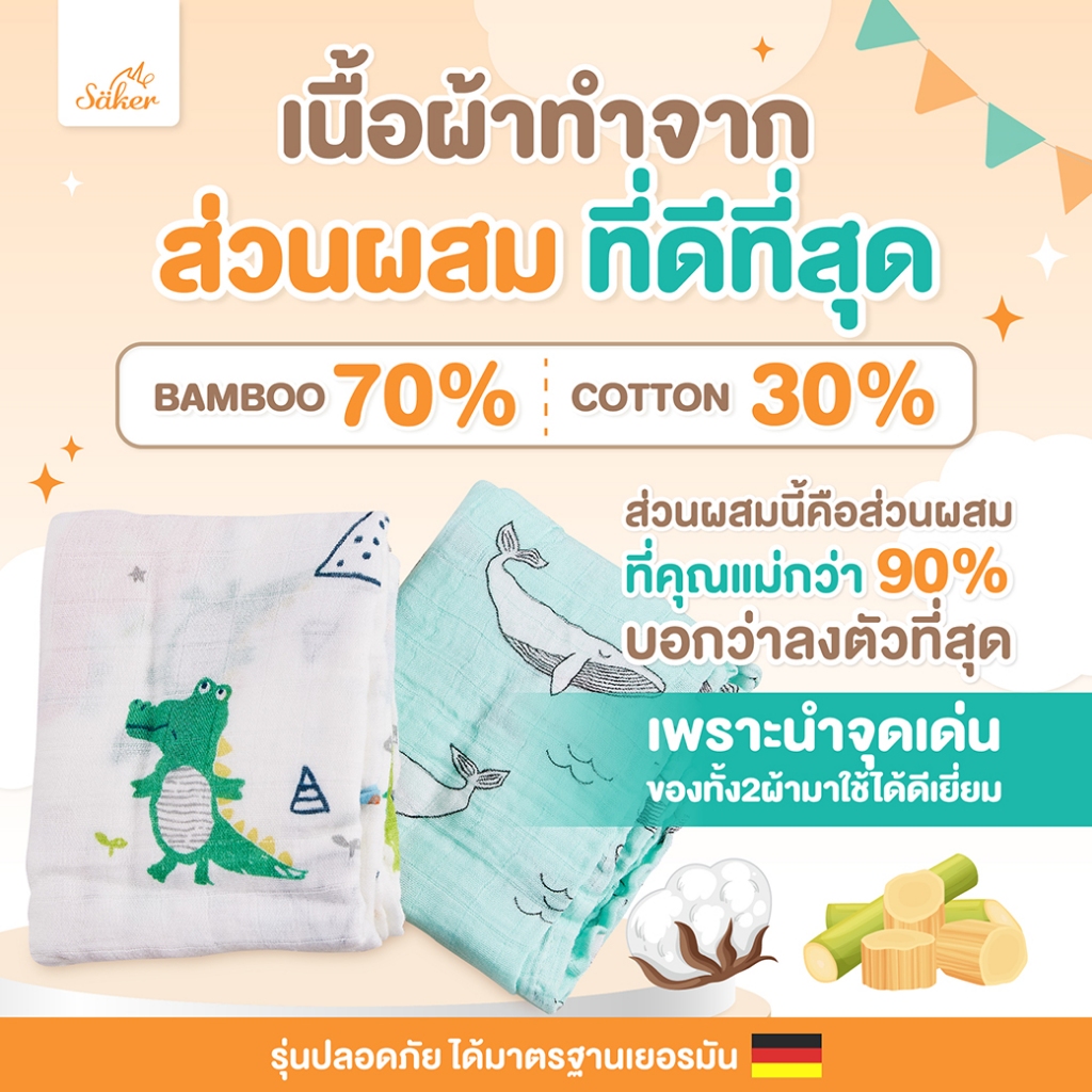 เกรดยุโรปผ้าอ้อม,ผ้าห่อตัวพรีเมี่ยมเกรด[ไซซ์ใหญ่] Saker Bamboo+COTTON ปลอดสารระเหย&สารอันตรายทุกชนิด