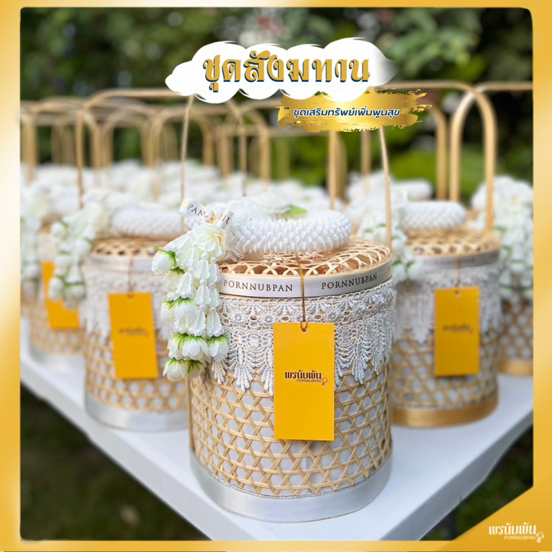 ชุดสังฑทาน พร้อมถวาย (A001)ชะลอมทรงปิ่นโต 7”,8”+ พวงมาลัย ตกแต่งตามภาพ ✨จัดส่งไว ภายในวัน✨