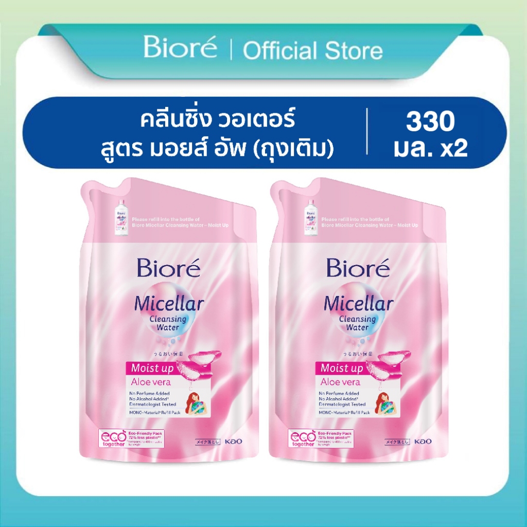 [แพ็ค2] บิโอเร คลีนซิ่ง วอเตอร์ ซอฟเท่น อัพ ถุงเติม 330มล Biore Cleansing Water Soften up Refill 330ml เช็ดเครื่องสำอาง