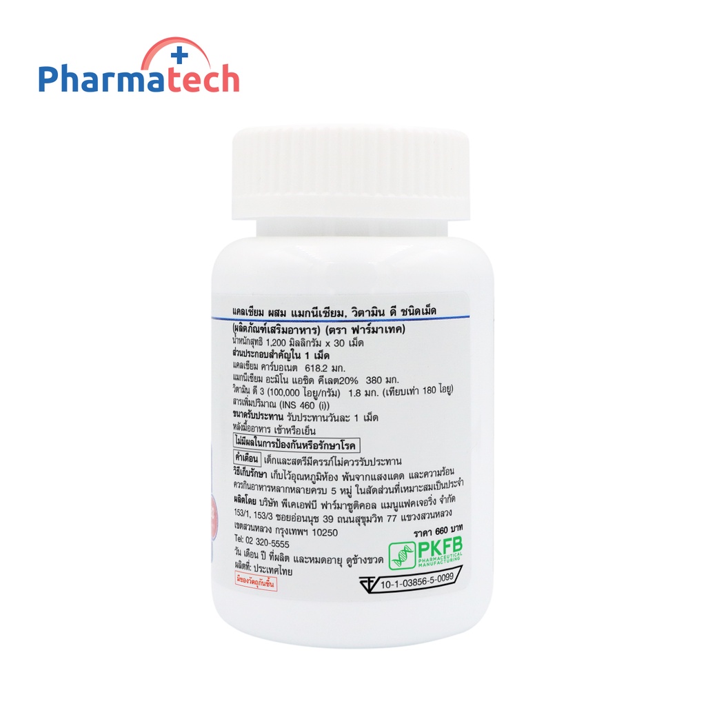แคลเซียม แมกนีเซียม วิตามินดี x 1 ขวด Calcium Magnesium Vitamin D ฟาร์มาเทค แคลเซียม Pharmatech