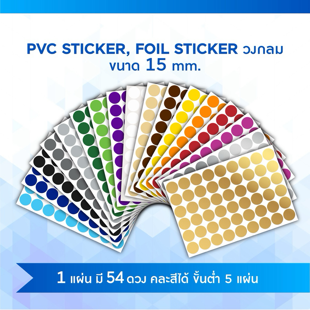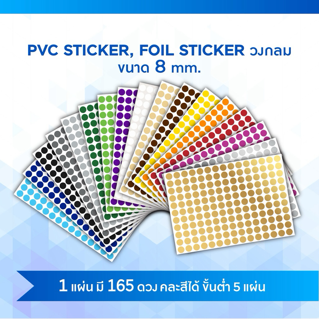 สติ๊กเกอร์วงกลมRoundStickerฉีกไม่ขาดColorCodingLabel PVC8mm,15mm,23mm,42mm(สั่งขั้นต่ำ6แผ่นคละสี)