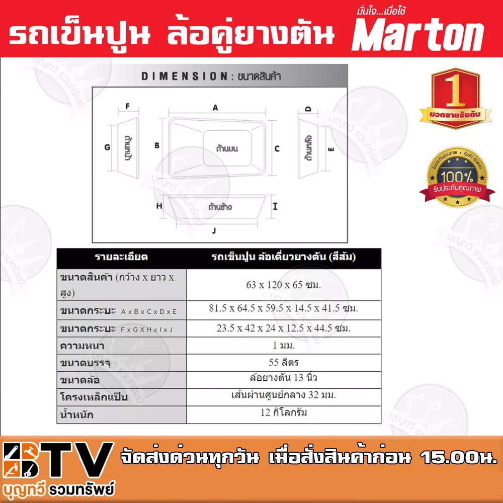 รถเข็นปูน ล้อคู่ยางตัน (สีส้ม) Marton รถเข็นปูนรูปแบบที่ทันสมัย สามารถถอดประกอบได้พร้อมมีอะไหล่ทุกชิ้นไว้คอยบริการ