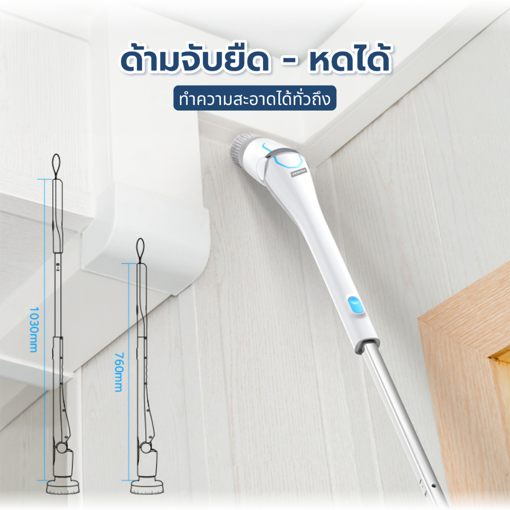 Homemi แปรงทำความสะอาดไฟฟ้า รุ่น 74W แถมหัวเปลี่ยน 4 แบบ ขัดห้องน้ำ ล้างรถ เช็ดกระจก (HM0025-P-WH)