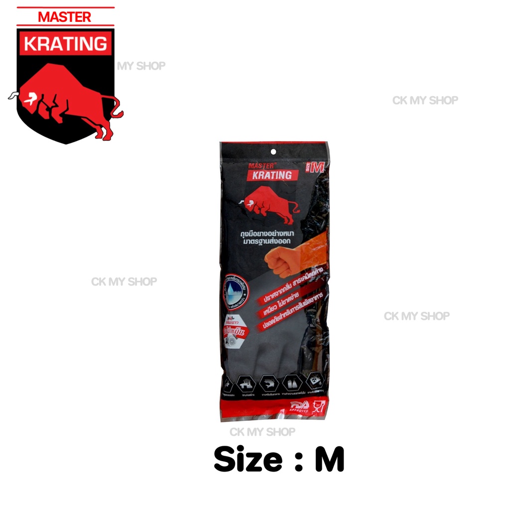 ถุงมือยางดำ กระทิง KRATING ด้านในเคลือบด้วยกำามะหยีเพื่อดูดซับเหงื่อ