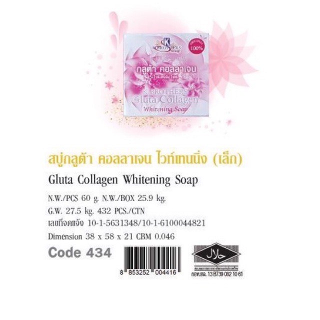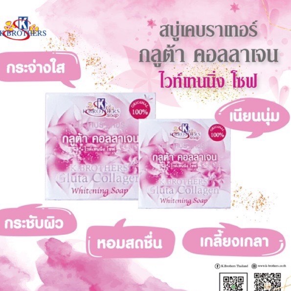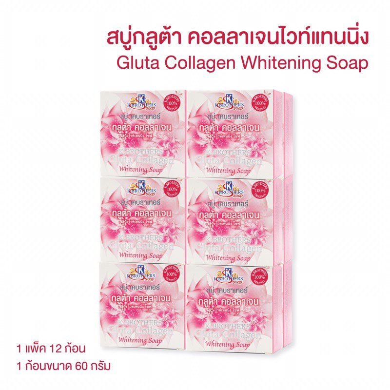 (แพ็ค 12 ก้อน) สบู่กลูต้า คอลลาเจนไวท์เทนนิ่ง สบู่กลูต้าผิวขาว ยี่ห้อ เค บราเทอร์ K.Brothers Gluta Collagen Whitening