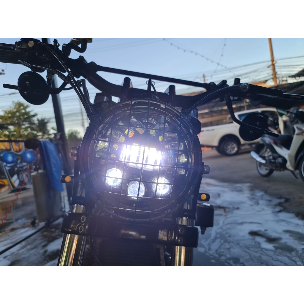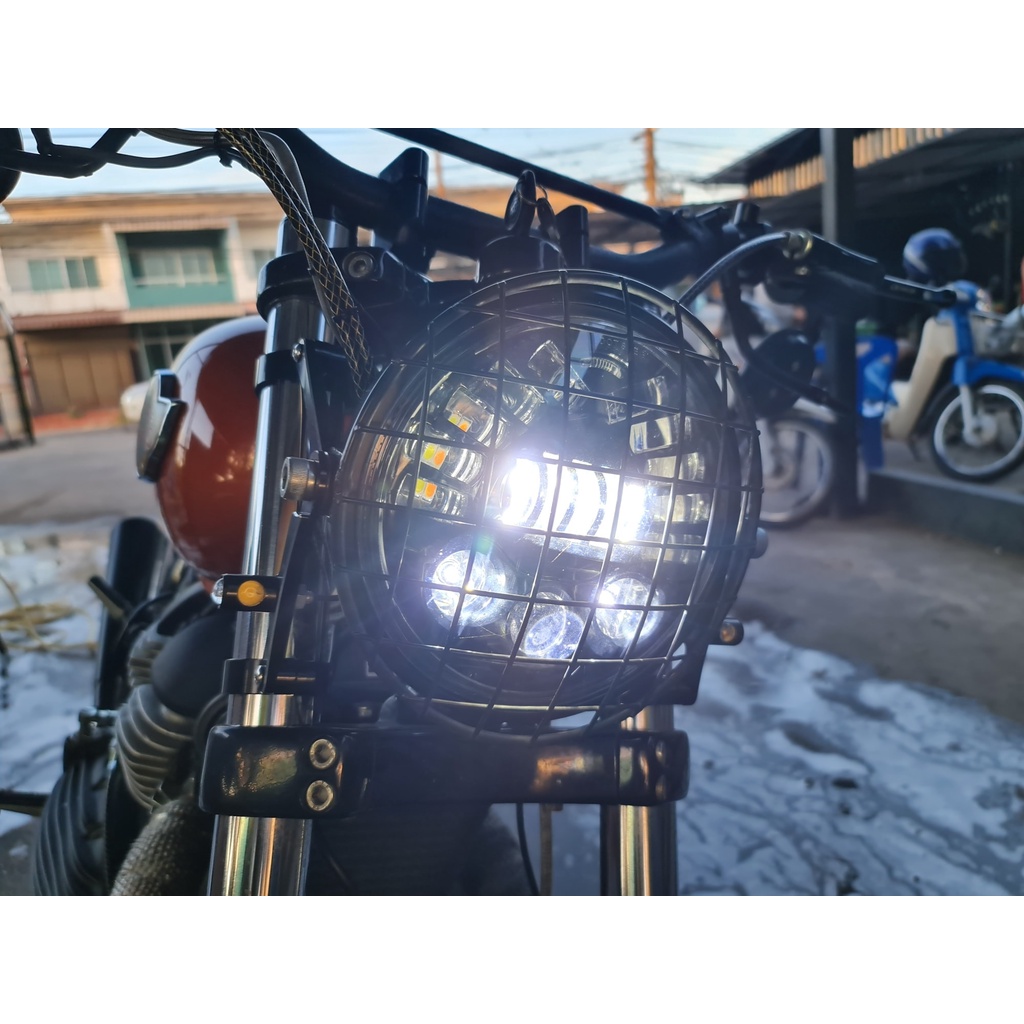ตะแกรงไฟหน้า ทรงไทรอัมพ์ 7 นิ้ว แบบตาข่าย ใส่ได้หลายรุ่น XSR155 RE650 TRIUMPH และรุ่นอื่นๆ