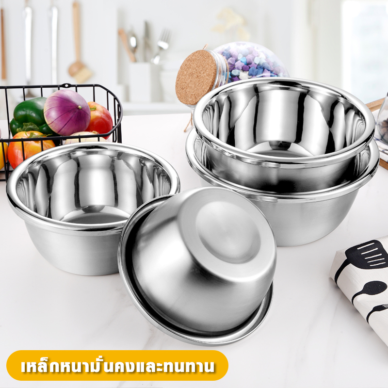 Koala ชามผสมแป้ง แบบหนา ขนาด ชามผสมวัตถุดิบอาหาร ชามสแตนเลสแท้ ถ้วยกลม กะละมังกลม เกรด