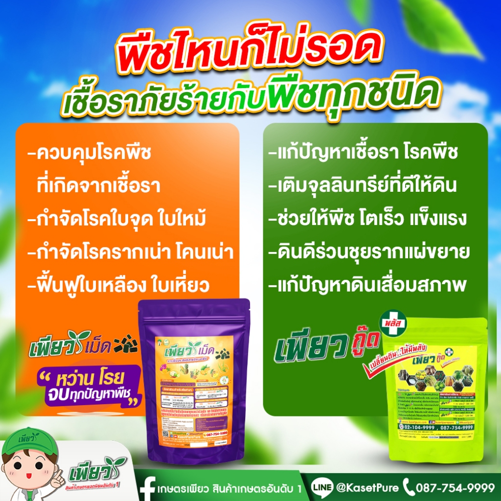 เพียวเม็ด 1 แถม 1 แก้เชื้อรา รักษาพืชป่วย ต้นโทรม ใบร่วง ดอกร่วง ผลร่วง-เน่า ใบจุด ราน้ำค้าง ราสนิม