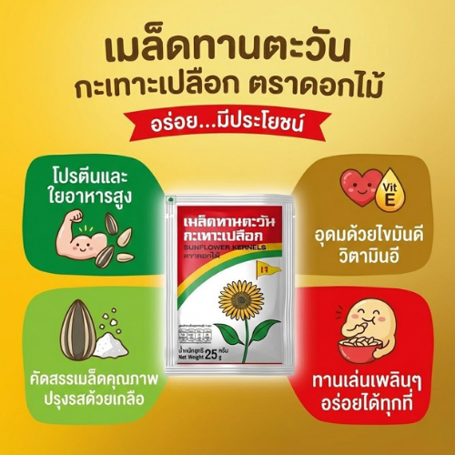 เมล็ดทานตะวัน 25 กรัม (5 ซอง/แพ็ค) Roasted Sunflower Kernels with salt 25 g. (5 pieces/pack)