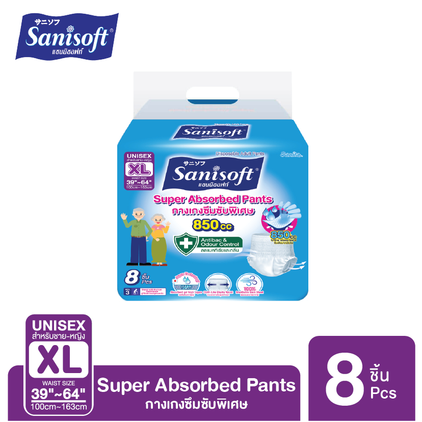 Sanisoft / แซนนิซอฟท์ กางเกงผู้ใหญ่ซึมซับพิเศษ 850 cc (ไซส์ M-10,L-10,XL-8)