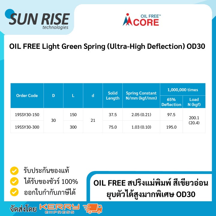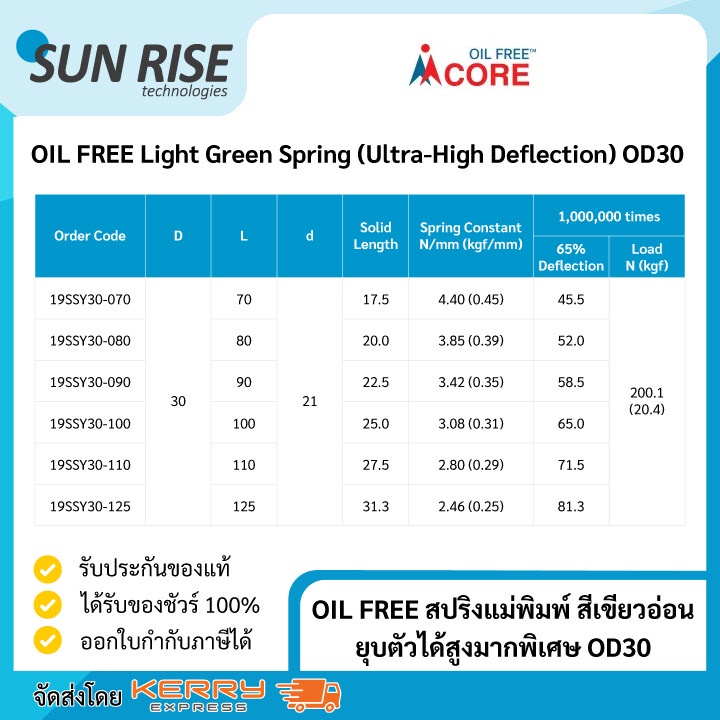 OIL FREE สปริงแม่พิมพ์ สีเขียวอ่อน ยุบตัวได้สูงมากพิเศษ OD30 Light Green Spring (Ultra-High Deflection) OD30
