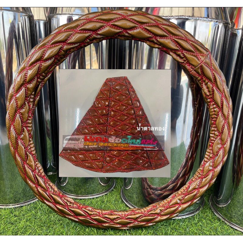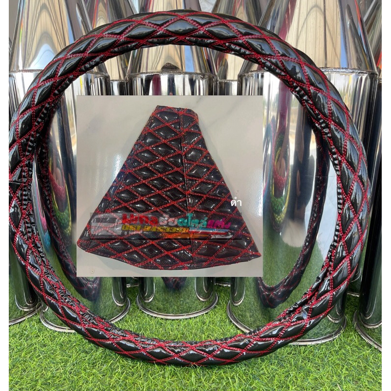 หุ้มพวงมาลัยรถบรรทุกแบบแคปร่าเย็บด้ายแดงสองเส้น(งานไทยแท้)มีไซร้ให้เลือก4ไซร้ หุ้มพวงมาลัยขายแยกกับหุ้มเกียร
