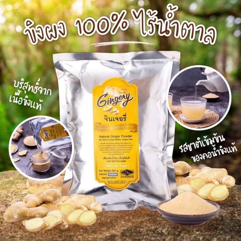 Gingery ขิงผง 100%ไร้น้ำตาล 500g. สดใหม่หมดอายุพฤศจิกายน2570