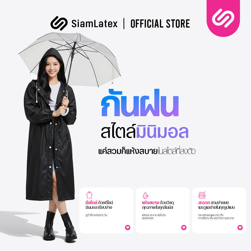 Siam Latex JACCO เสื้อกันฝน เกรดพรีเมี่ยม ทนทาน ใช้ซ้ำได้หลายครั้ง น้ำหนักเบา พับเก็บง่าย แห้งไว