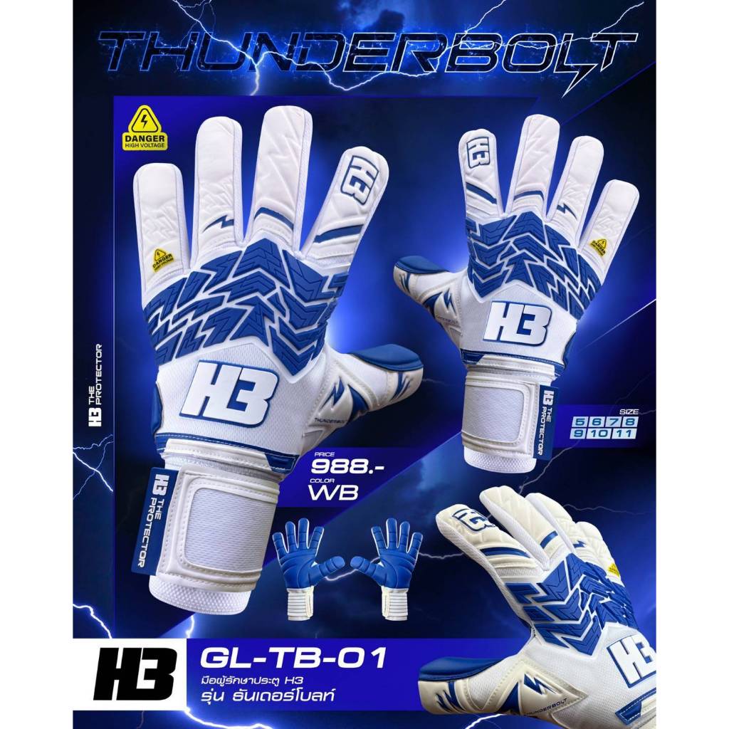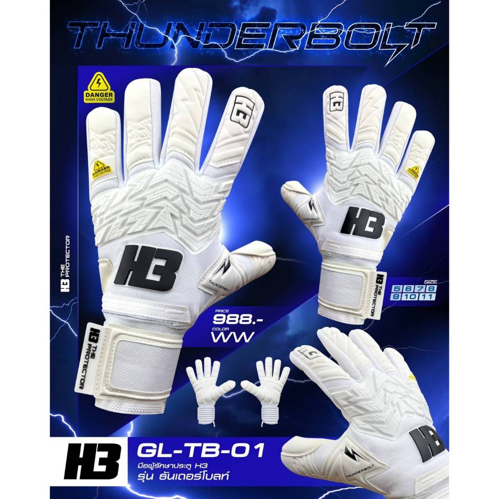 ถุงมือผู้รักษาประตู ถุงมือโกล H3 รุ่น Thunderbolt 2025 มี finger safe 5 นิ้ว