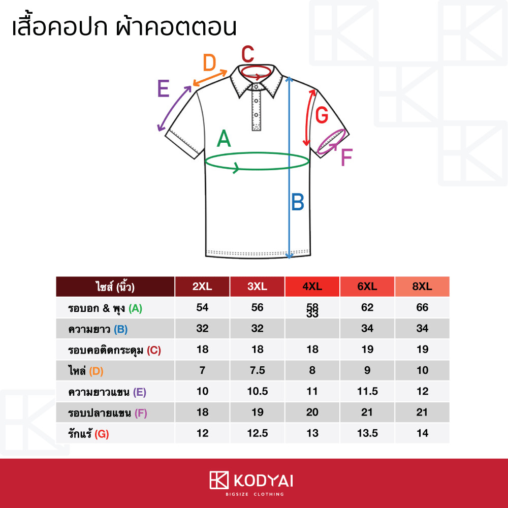 เสื้อโปโล เสื้อคอปก อก 54-66 นิ้ว cotton100% ไซส์ใหญ่พิเศษ เสื้อคนอ้วน รหัส 702 : KODYAI