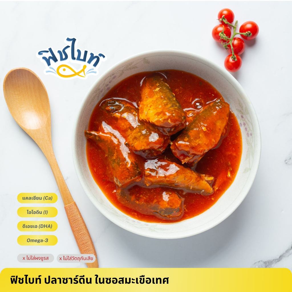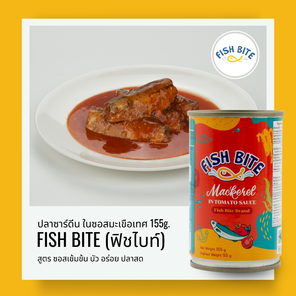 Fish Bite และ Maenaie ปลาซาร์ดีน และ ปลาแมคคาเรล ในซอสมะเขือเทศ ขนาด 155g. 1กระป๋อง