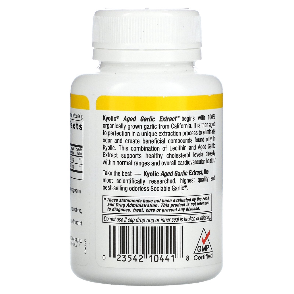 Kyolic, Aged Garlic Extract with Lecithin, Cholesterol, Formula 104, 100 Capsules สารสกัดกระเทียมบ่ม