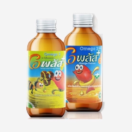 O-Plus O Plus โอพลัส โอเมก้า 3 น้ำมันปลา บำรุงสมอง เจริญอาหาร ขนาด 120 ml รสส้ม / รสน้ำผึ้งมะนาว