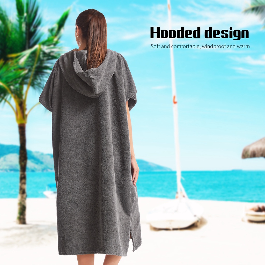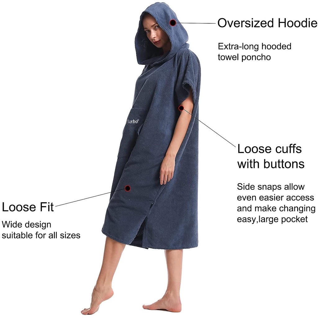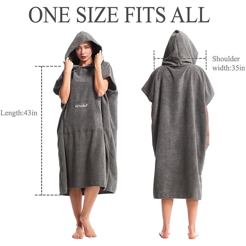 Hiturbo เสื้อคลุมเปลี่ยนเซิร์ฟ โพนโช พร้อมฮู้ด และผ้าขนหนูไมโครไฟเบอร์ สําหรับเล่นเซิร์ฟ ชายหาด ว่ายน้ํา กีฬากลางแจ้ง (ขนาดเดียวเหมาะกับทุกขนาด)