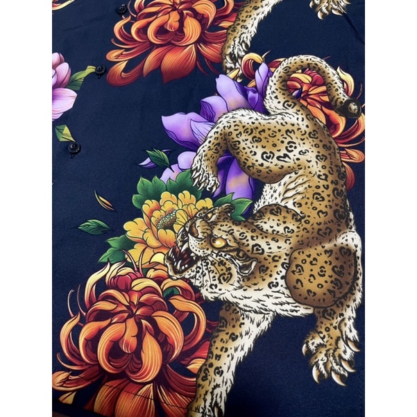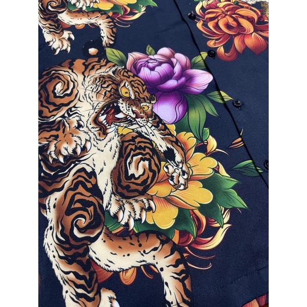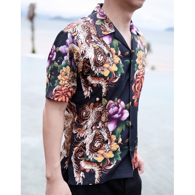เสื้อฮาวาย ลายเสือดอกไม้ญี่ปุ่น ผ้านุ่มสบาย ไม่ต้องรีด