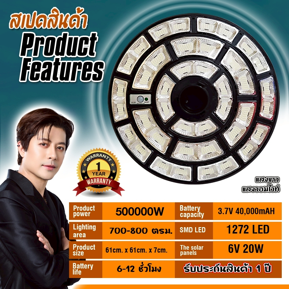 ใหม่ล่าสุด UFO-500000W 1272LED สว่าง 360 องศา กันน้ำ IP67 ใช้พลังงานแสงอาทิตย์100% รับประกัน1ปี