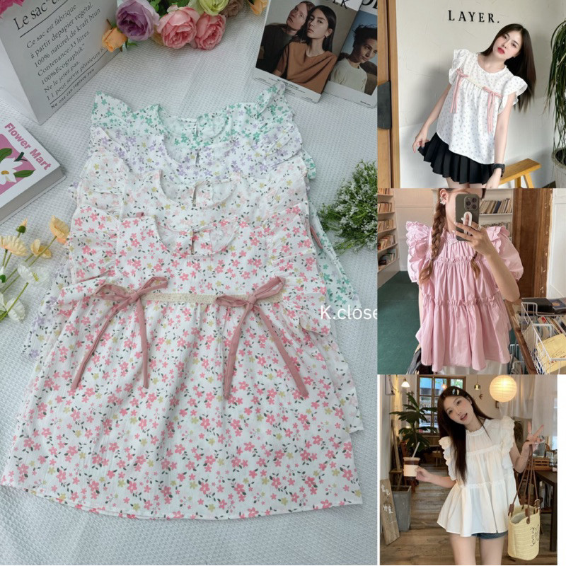 เสื้อคอกลมระบายชั้น ทรงใหญ่สาวอวบใส่ได้(มี อกถึง 42) เสื้อผ้าผู้หญิง
