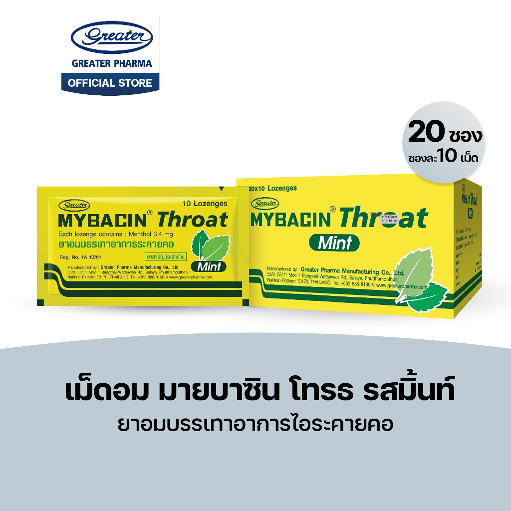 เม็ดอม โทรธ รสมิ้นท์ ยาอมบรรเทาอาการไอระคายคอ 20ซอง x10เม็ด Mybacin