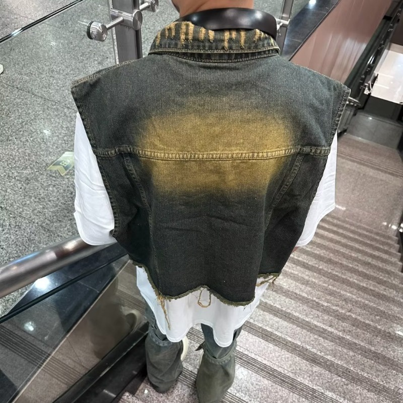 Hanlu เสื้อแจ็กเก็ตยีนแขนกุด คอปก ทรงหลวม อเนกประสงค์ สไตล์เรโทร สําหรับผู้ชาย