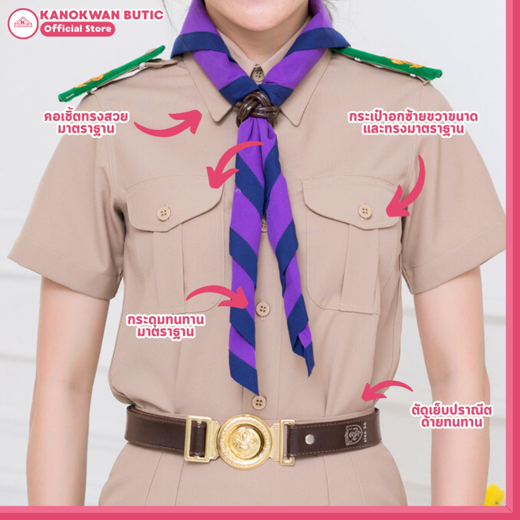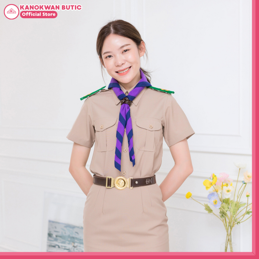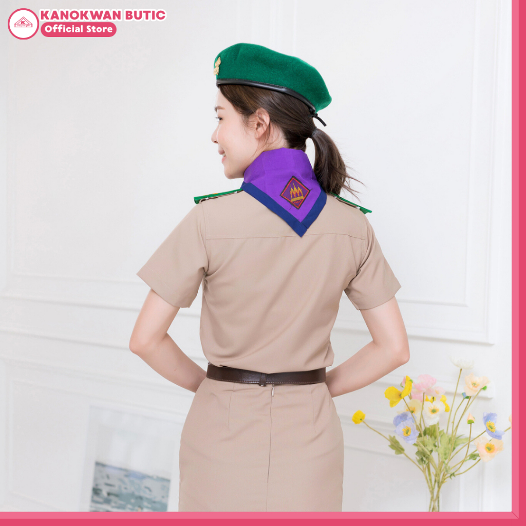 ชุดลูกเสือครูกากีหญิง ชุดผู้กำกับลูกเสือหญิง คอเชิ้ตแขนสั้น+กระโปรง