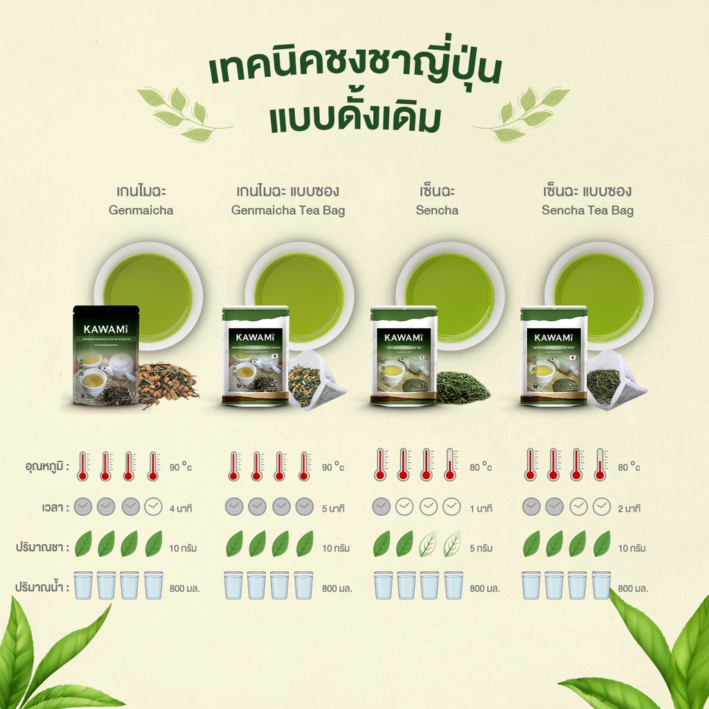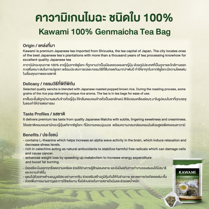 คาวามิ เกนไมฉะ ชนิดใบ 100% แบบซอง ขนาด 200 กรัม KAWAMI Genmaicha Tea Bags 100% size 200g.