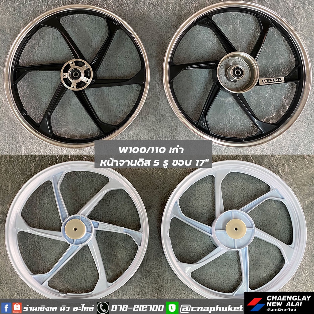 ล้อแม็ก Kuni Wave100/110 รุ่นเก่า จานดิส 5 รู ขอบ 17 นิ้ว ดำ/ขาว