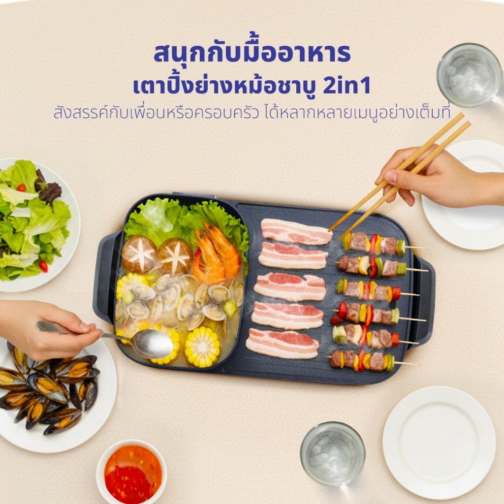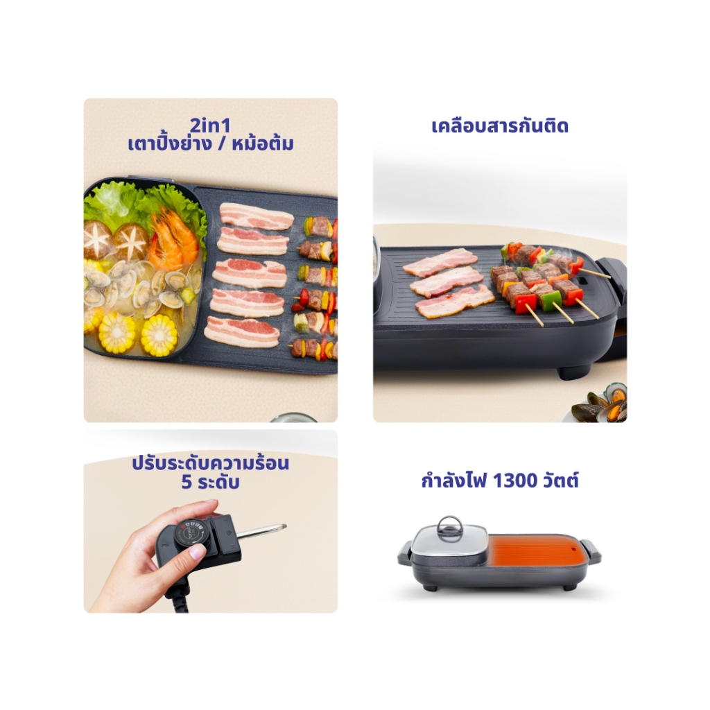 Kashiwa เตาปิ้งย่าง รุ่น KW-308 - 2025 หม้อสุกี้ไฟฟ้า เตาย่างไฟฟ้า กำลังไฟ 1300 วัตต์