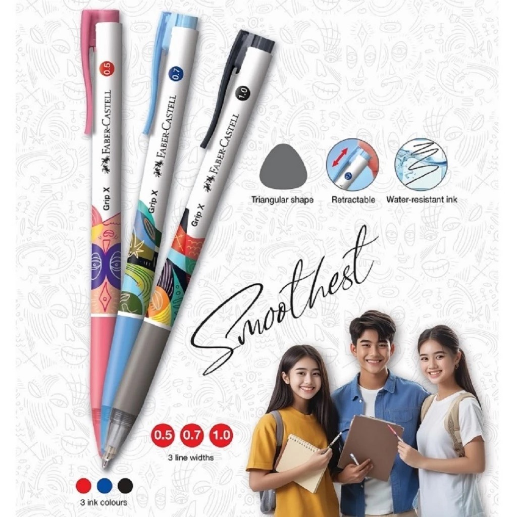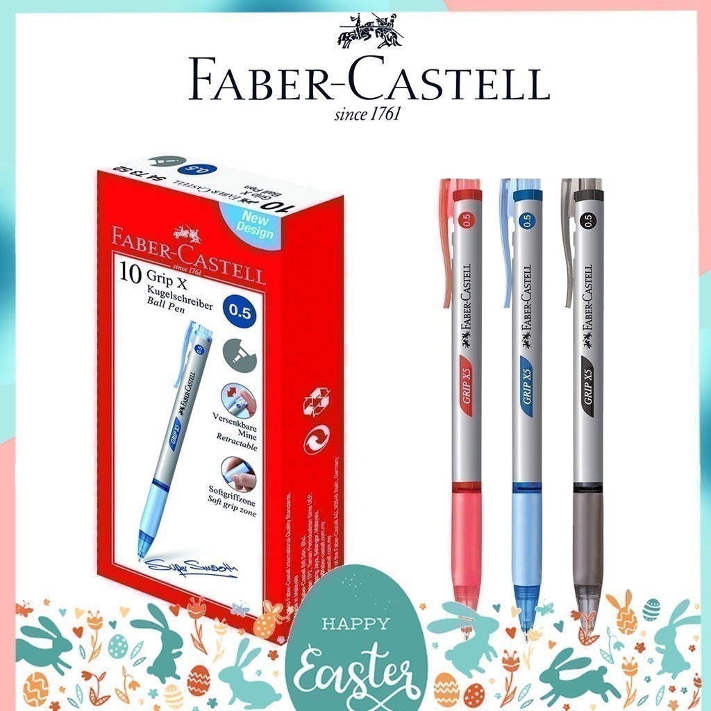 ปากกาลูกลื่น Faber Castell พาสเทล รุ่น Grip X แบบกด ขนาด 0.5 MM และ 0.7 MM ยกกล่อง (10 แท่ง)