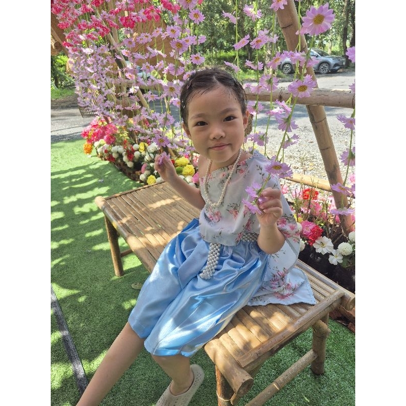 สไบเด็ก ลายดอกไม้หวานๆ สม๊อคหลัง มีสายพาดบ่า ใส่สบายไม่ต้องกลัวหลุด