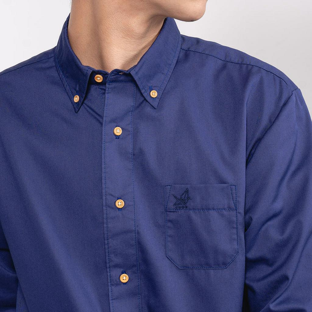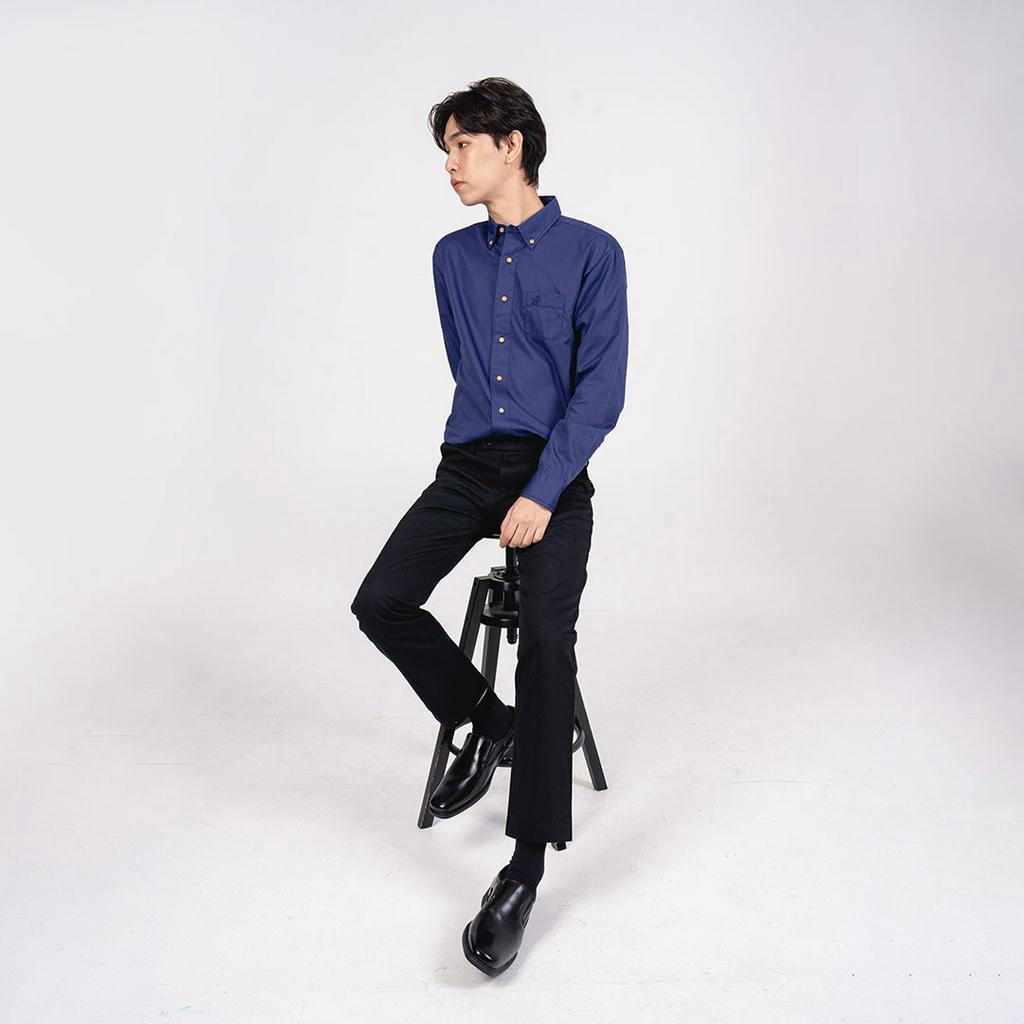 (NO XL) ISSARA Basic เสื้อเชิ้ตชาย ปกกระดุม ทรงสลิม สีน้ำเงิน