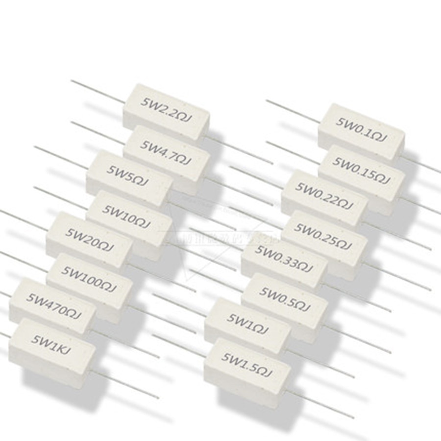 ตัวต้านทานซีเมนต์เชื่อมต่อพลังงาน 5W 5% 0.1 0.22 0.25 0.33 0.5 1 2.2 2.7 4.7 5 10 15 20 22 47 100 โอห์ม 5 ชิ้น
