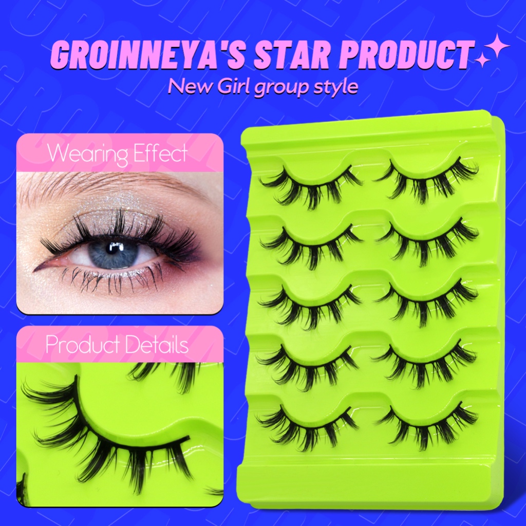 Groinneya ขนตาปลอม มังงะ นุ่ม ธรรมชาติ ขนตาหนา ขนตามังงะ ขนตาเดท ประจําวัน แต่งหน้า ขนตา Wispy