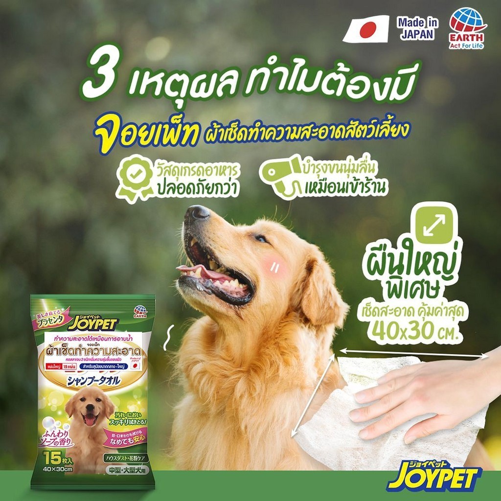 จอยเพ็ท ผ้าเช็ดทำความสะอาดสำหรับสุนัขขนาดกลาง - ใหญ่ JOYPET SHAMPOO TOWEL FOR MIDDLE _ LARGE DOG